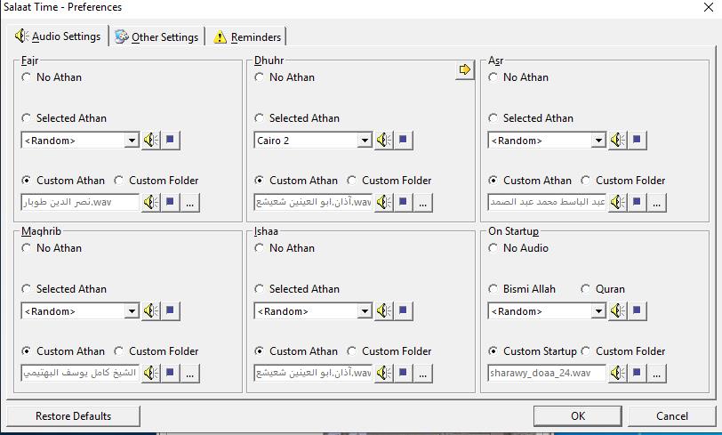 برنامج الآذان , salaat time , مع امكانية تخصيص صوت الآذان